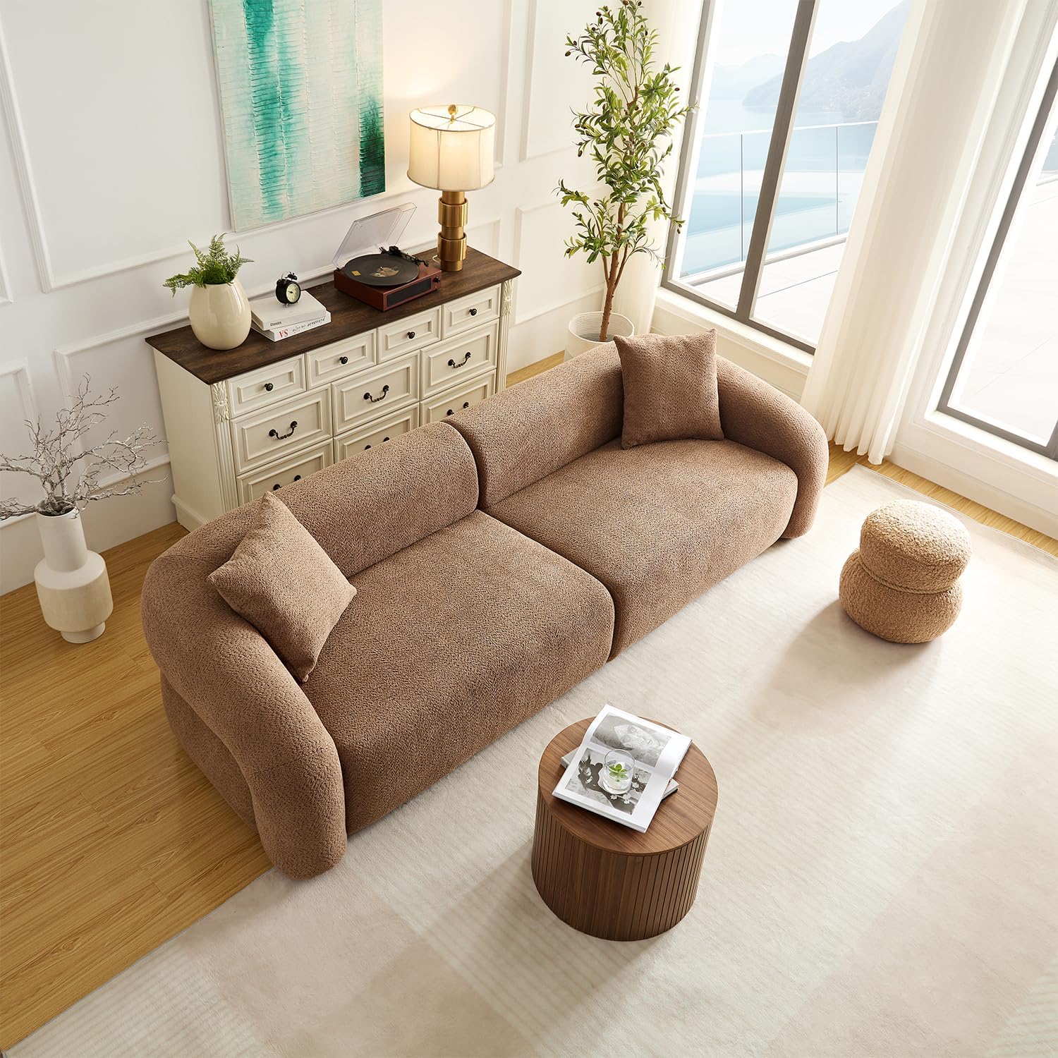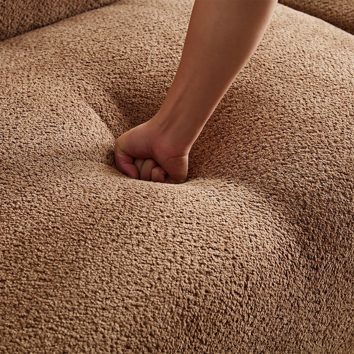 Ce canapé est fabriqué avec un tissu Boucle de haute qualité, offrant une sensation incroyablement douce et confortable. Le tissu respirant est durable et facile à nettoyer, garantissant une utilisation durable. Il est parfait pour de longues heures assises, que vous regardiez la télévision, lisiez ou travailliez.