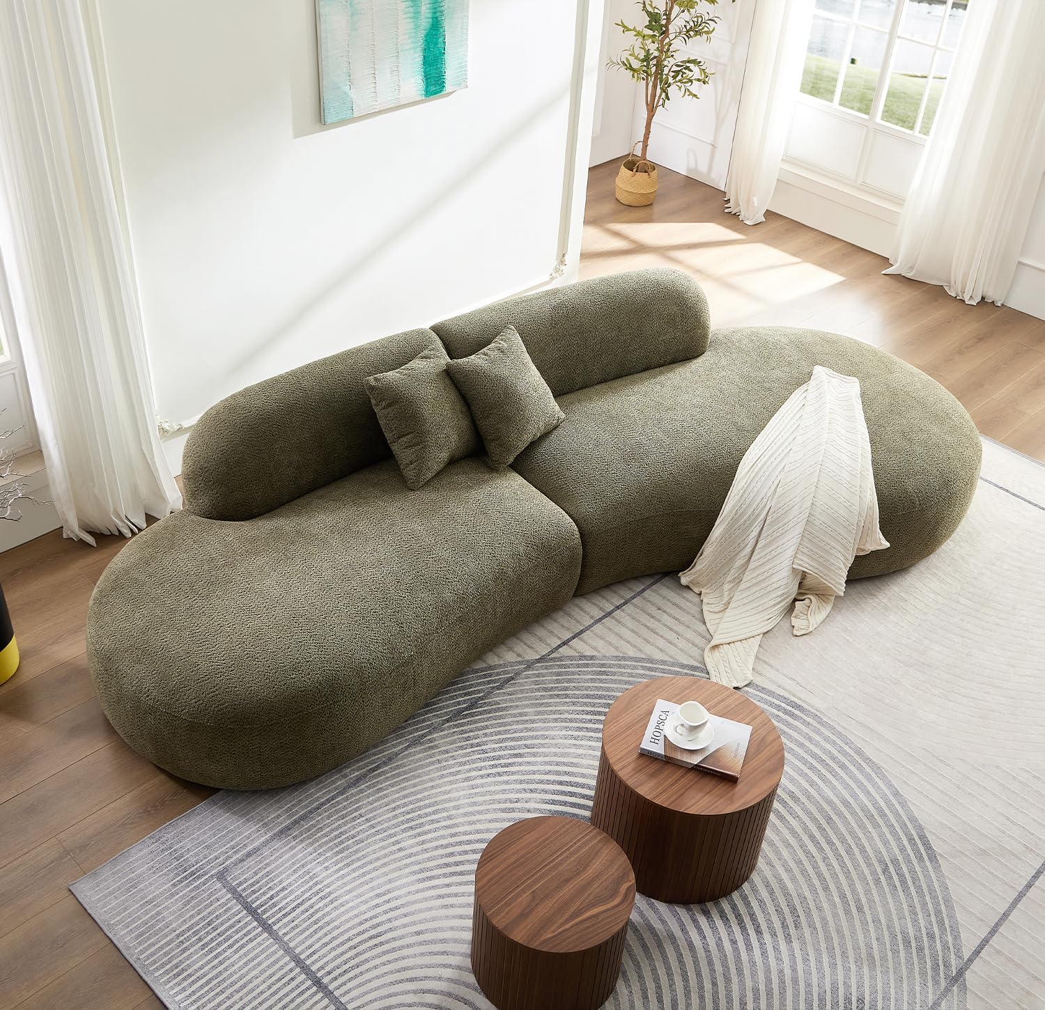 Design incurvé moderne : Cet élégant canapé sectionnel incurvé offre un rembourrage supérieur et un soutien ergonomique, enveloppé dans un tissu bouclé haut de gamme. Son design épuré rehausse l'esthétique de n'importe quelle pièce, le rendant idéal pour les salons, les chambres ou les appartements.